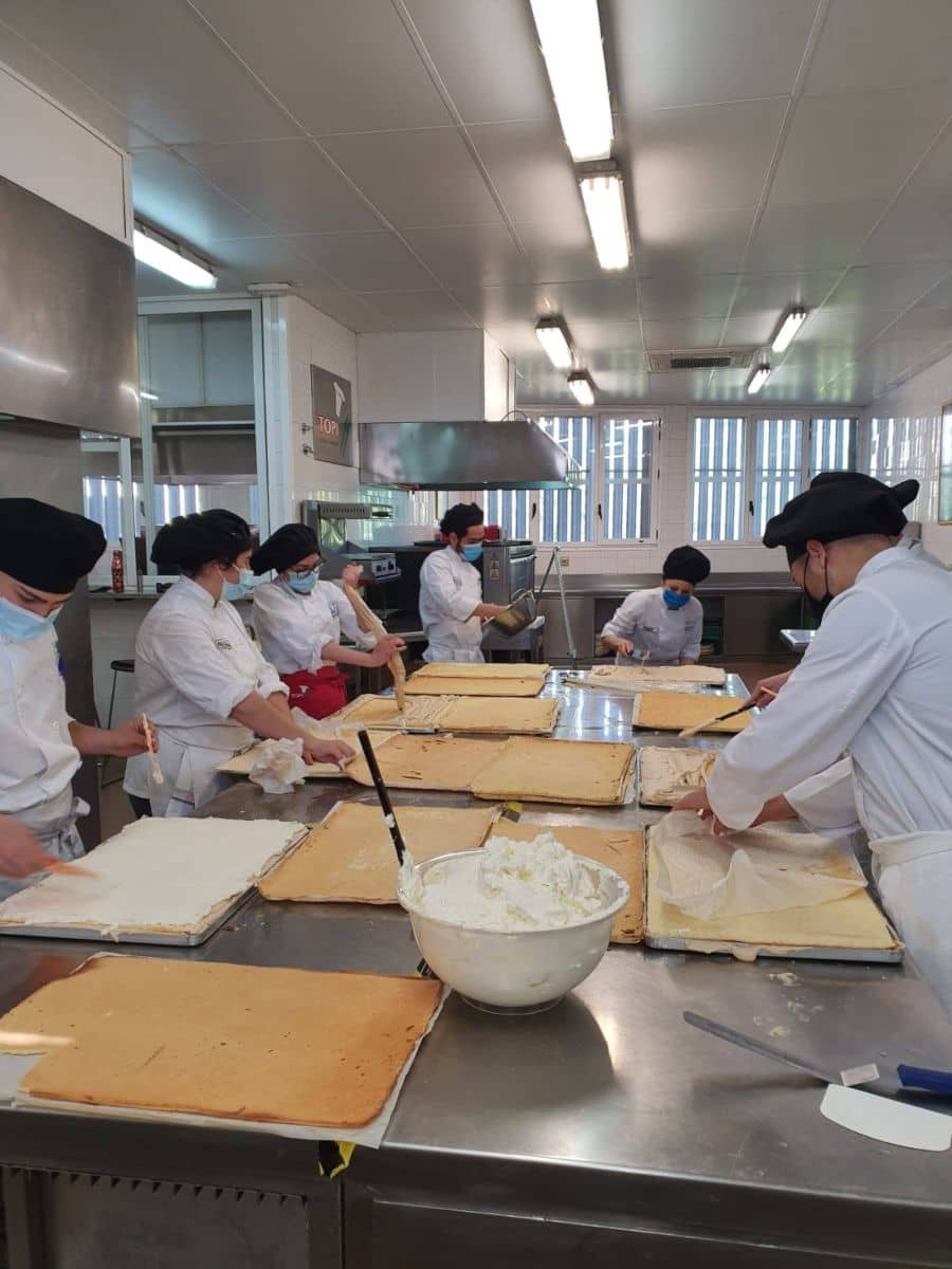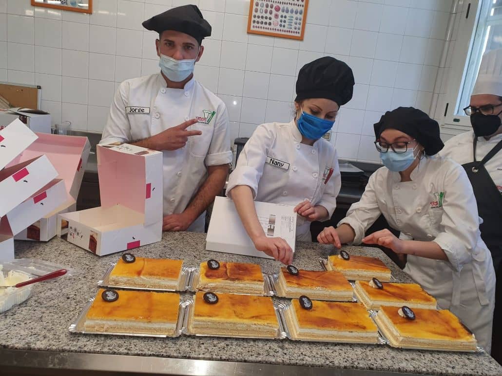 Bizcocho, nata, praliné de almendras, yema tostada… Estos son varios de los ingredientes que componen este rico postre, a los que nuestro alumnado le sumó su generosidad, solidaridad y el entusiasmo por ayudar.