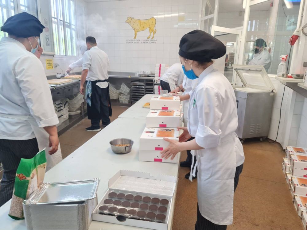 A través de lo que mejor se nos da en la escuela, la gastronomía, los chicos y chicas se pusieron en marcha para elaborar artesanalmente los más de doscientos lanzones que nos marcamos como objetivo.