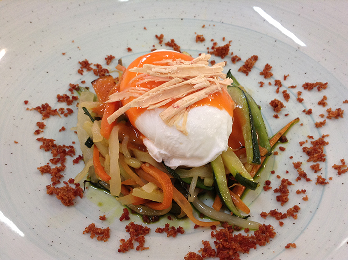 Huevo Escalfado Robado con Verduras Salteadas y Asadas
