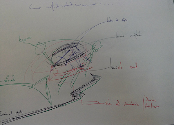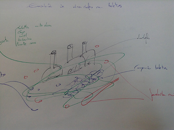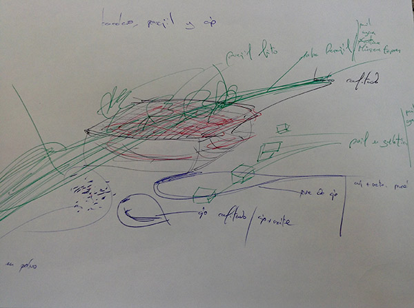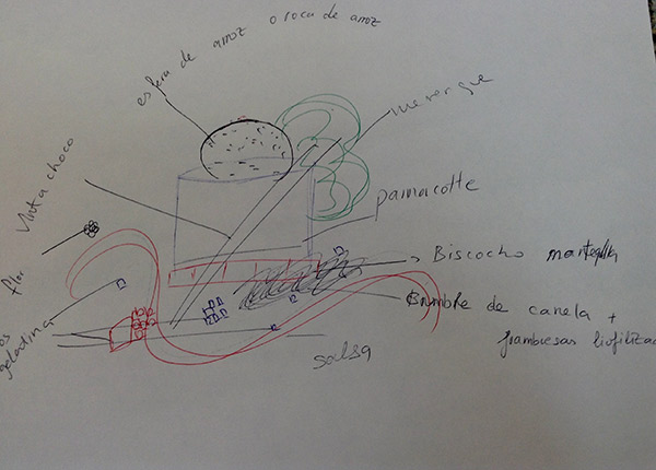 De los bocetos a bolígrafo, eso sí, con varios colores, a la materialidad, en la que también se observan los distintas tonalidades de color de los distintos ingredientes.