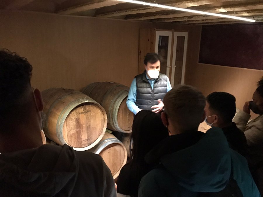 La visita fue guiada por Carlos Estrada, enólogo de la bodega, el cual nos enseñó la antigua bodega familiar situada en los bajos de su propia casa. Posteriormente, pudimos visitar el resto de sus instalaciones donde realizan sus vinos de forma semiautomática, en la cual el trabajo humano sigue teniendo una gran importancia. Para finalizar, pudimos probar sus vinos acompañados de un pequeño ágape como colofón a esta jornada de ocio basado en el aprendizaje, tan positiva para nuestro alumnado.